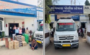 ગુજરાતમાં દારૂબંધી હોવા છતાં, બુટલેગરો દ્વારા દારૂની હેરાફેરી માટે અવનવા કીમિયા અપનાવવામાં આવે છે, જેમાં તાજેતરમાં નર્મદા જિલ્લાના સાગબારા પોલીસે મોટી સફળતા મેળવી છે. સાગબારા પોલીસે ધનશેરા આંતરરાજ્ય ચેકપોસ્ટથી એક એમ્બ્યુલન્સમાંથી વિદેશી દારૂનો મોટો જથ્થો ઝડપી પાડ્યો છે.