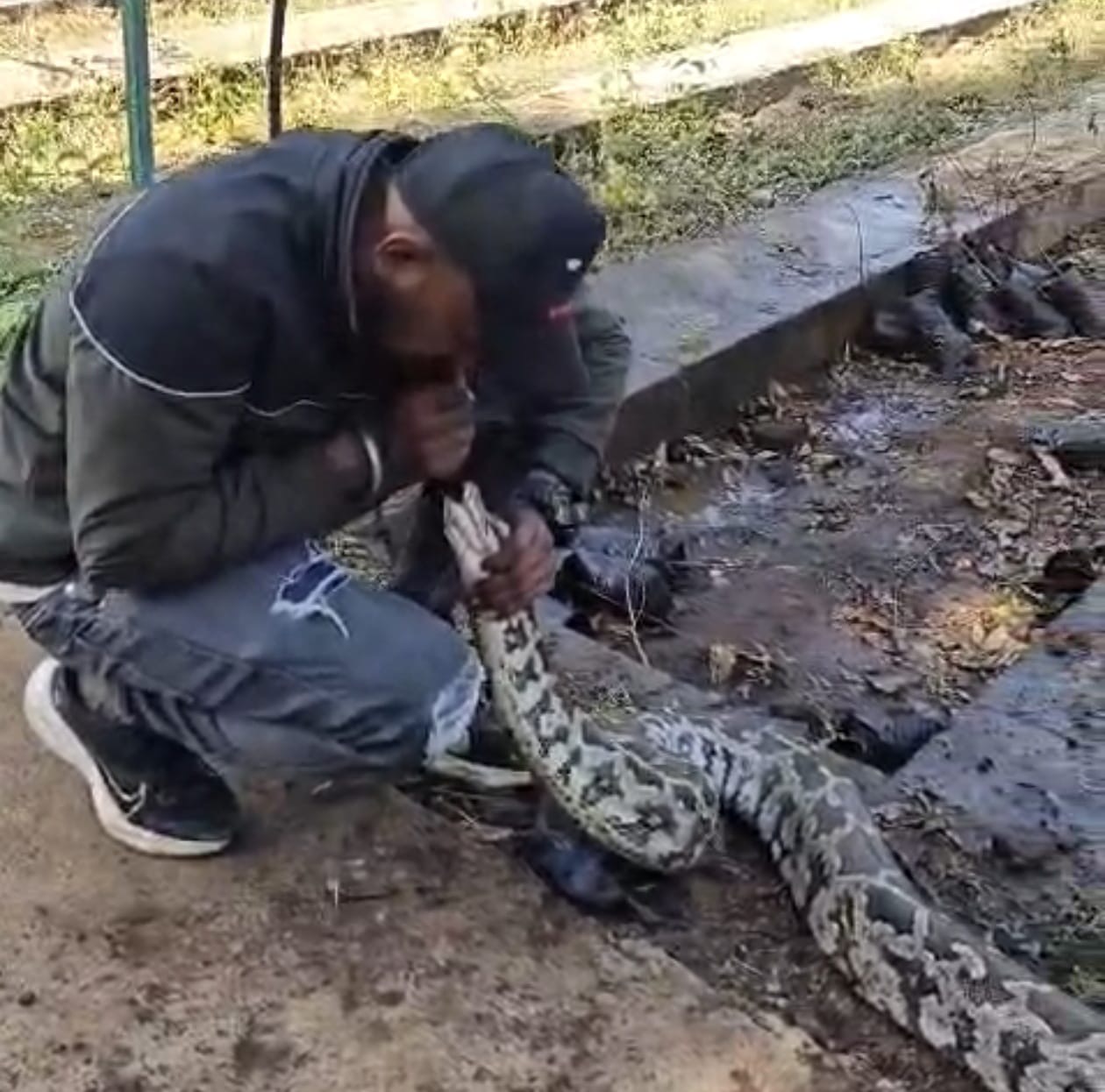 ઠન્ડીને કારણે બેભાન થઈ ગયેલા 12 ફૂટ મોટા અજગર ને સીપીઆર આપી ભાનમાં લાવી જીવ બચાવ્યો