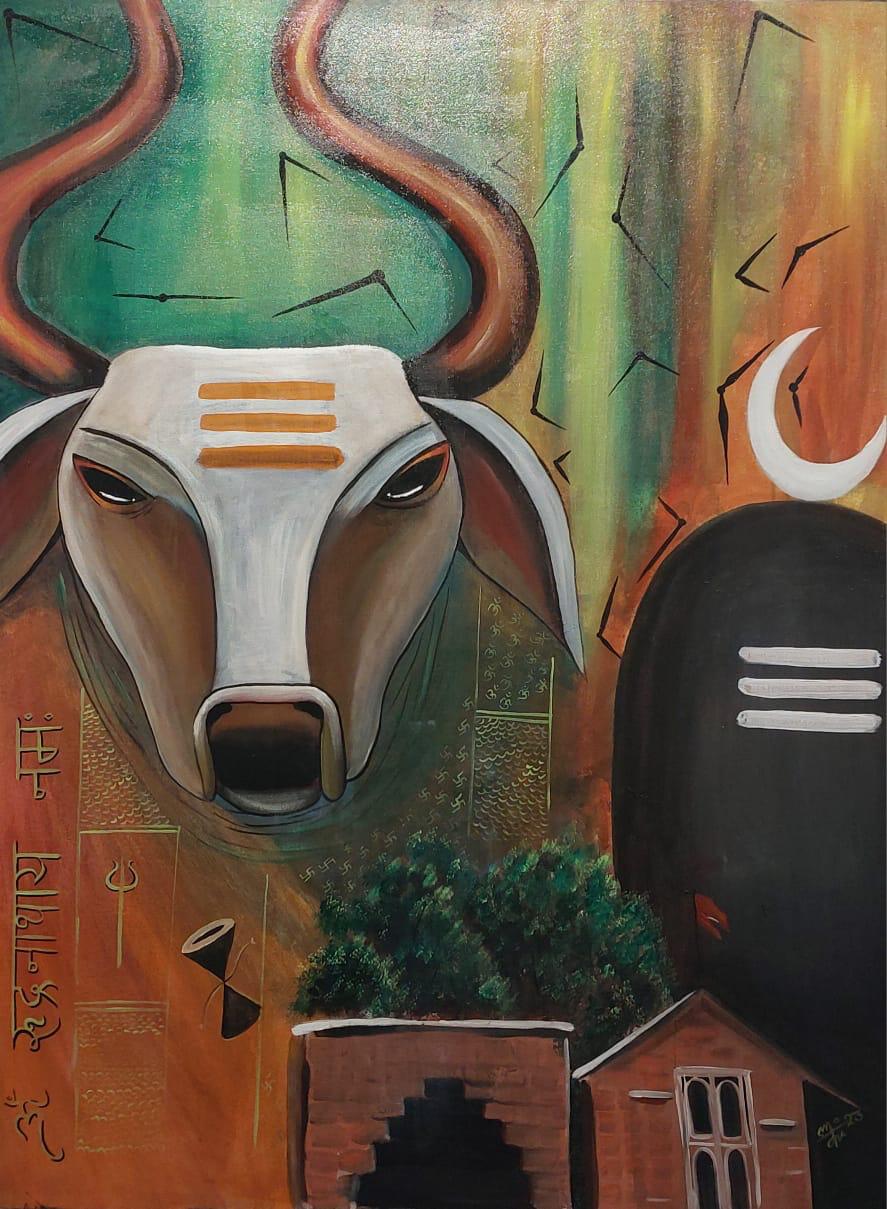 આઈ. એ. એસ. નિધિ ચૌધરી કેદારનાથ ના દર્શન કરવા ગયા ત્યારે ત્યાં શિવજીના મંદિરમાં શિવ પર આધારિત ચિત્રોનું સર્જન કરવાની પ્રેરણા પ્રાપ્ત થઇ. તેઓએ શિવજી તથા નંદી, ધ્યાનસ્થ શિવજી, હિમાલયની બર્ફીલી ચોટીઓ, અદભુત સંગીતનું સર્જન કરવામાં મગ્ન શિવજી જેવા ઘણાં ચિત્રો નું ખૂબજ સુંદરતા પૂર્વક કરવામાં આવ્યું છે.